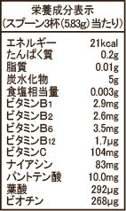 ■1日当たりの摂取目安量:1日当たり20g(専用スプーン1杯)を目安にお召し上がりください。