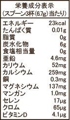 ■原材料名:フルクトース、藻類パウダー、スギナエキス、クロム酵母、マンガン酵母、セレン酵母 / 酸味料、炭酸マグネシウム、βカロテン、クエン酸カリウム、炭酸カルシウム、レモン香料、乳酸カルシウム、グルコン酸亜鉛、グルコン酸銅、ビタミンD
